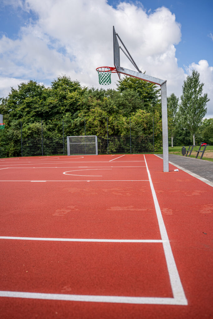 - Einbau von 510 m² synthetischem Sportplatzbelag